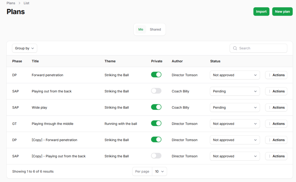 The plan interface is clean and modern and makes putting sessions together a real pleasure, copying plan parts is so easy to do.